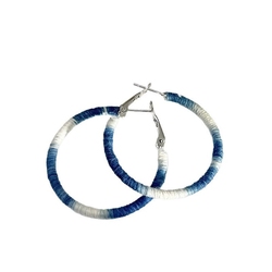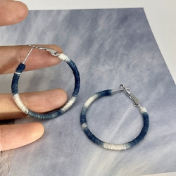 Pendiente de aro, azul Boho-Chic Algodón Tejido a mano Degradado Azul Algodón Pendientes de aro de oreja