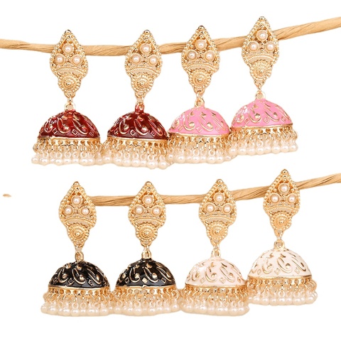 Jhumka-pendientes colgantes de estilo indio para mujer, joyería tradicional, aretes grandes Jhumka